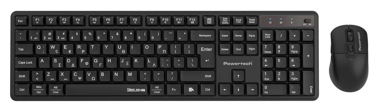 POWERTECH σετ ασύρματο ποντίκι και πληκτρολόγιο PT 1540 2.4GHz και Bluetooth αθόρυβο μαύρο