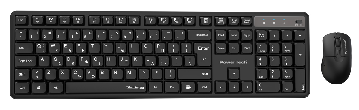 POWERTECH Σετ Ασύρματο Ποντίκι και Πληκτρολόγιο PT 1541 Αθόρυβο Μαύρο