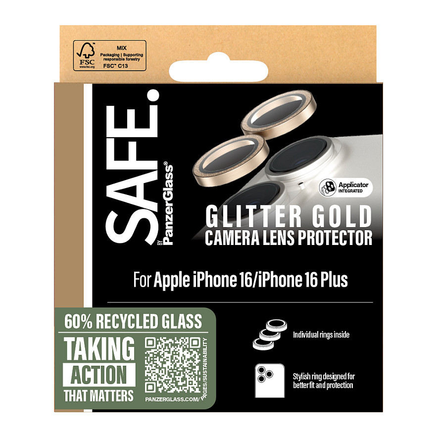 Προστατευτικό Κάμερας PanzerGlass Safe Glitter Gold iPhone 16/16 Plus