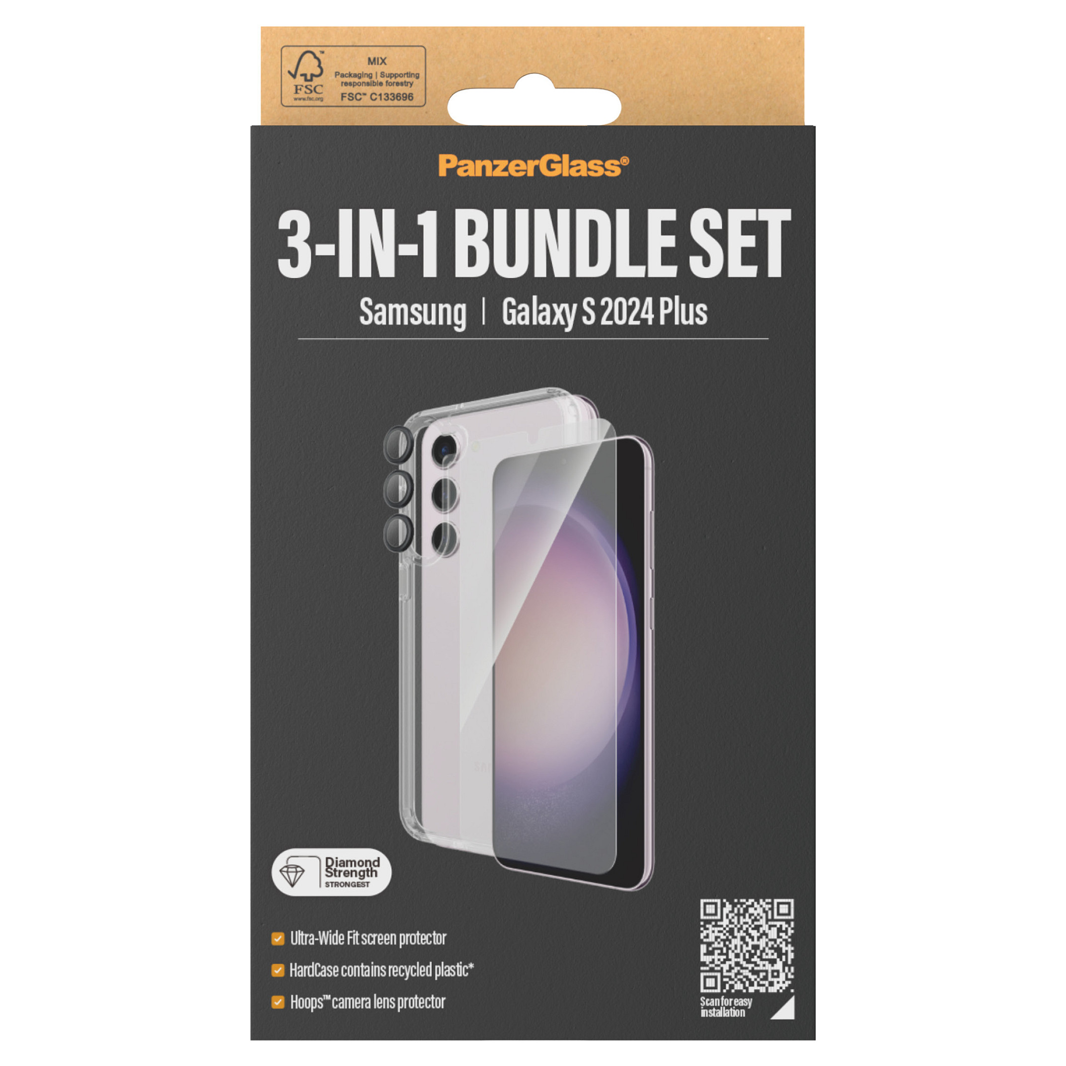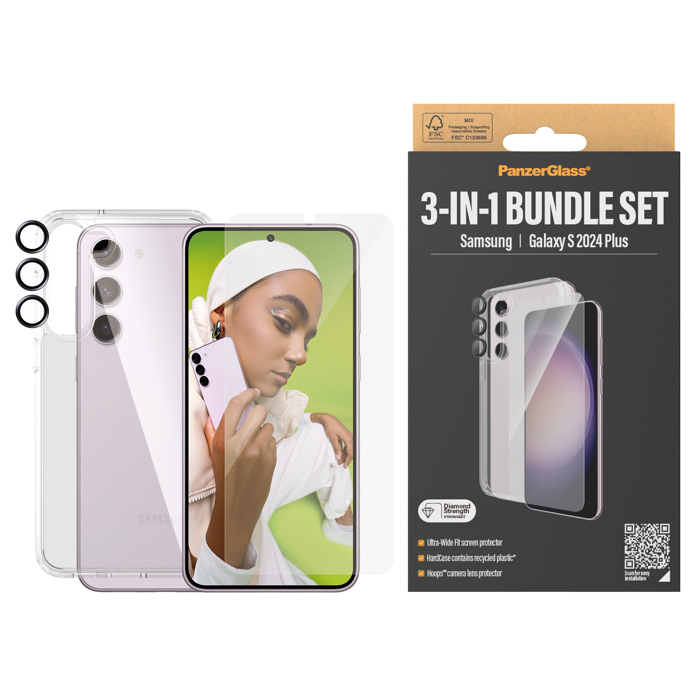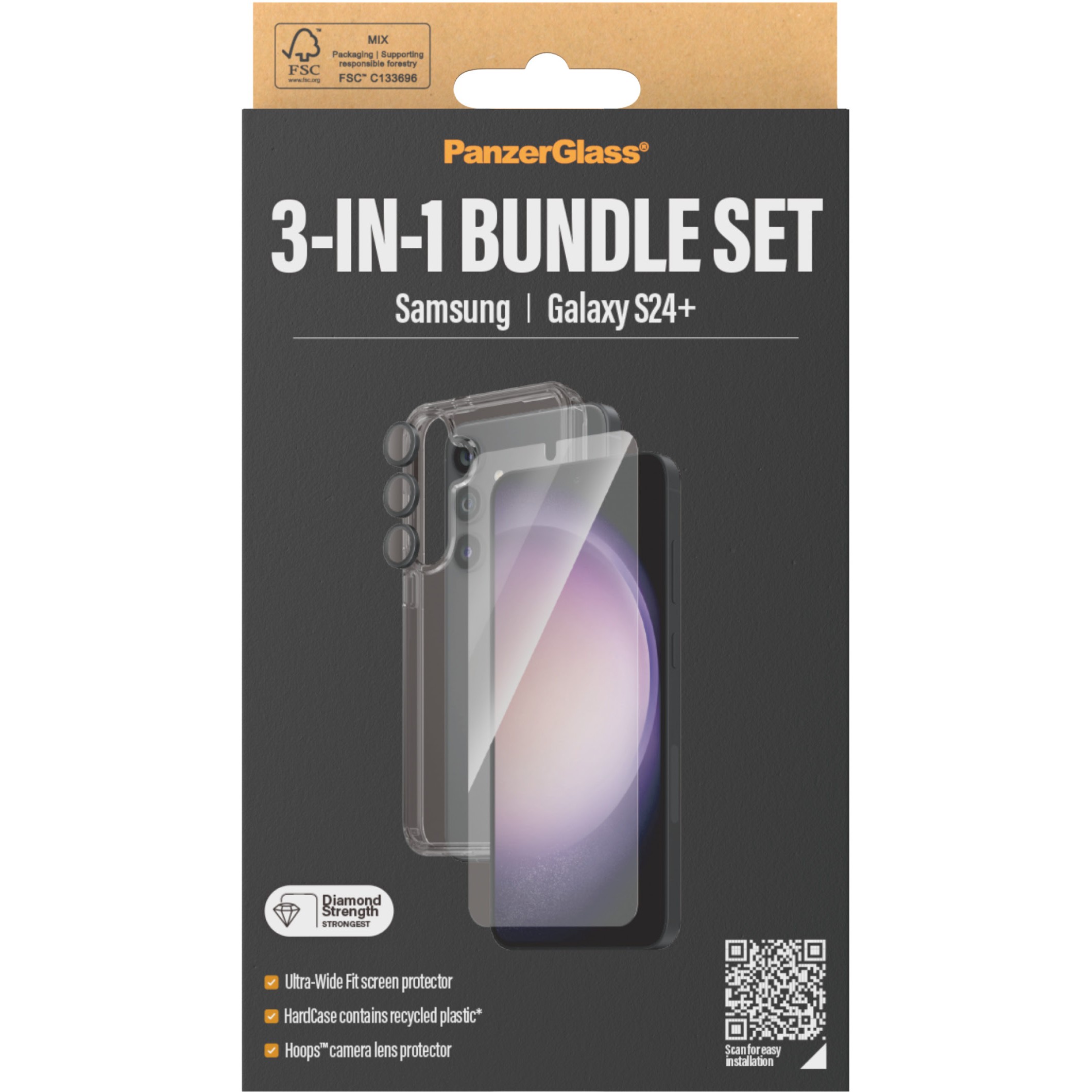 Η PanzerGlass 3-in-1 Pack για το Samsung Galaxy S24 Plus είναι μια εξαιρετική λύση προστασίας που έχει σχεδιαστεί για να εξασφαλίσει την ασφάλεια της συσκευής σας αποτελεσματικά. Αποτελείται από τρία βασικά συστατικά, διασφαλίζοντας ότι το τηλέφωνό σας παραμένει ασφαλές από καθημερινές απειλές.