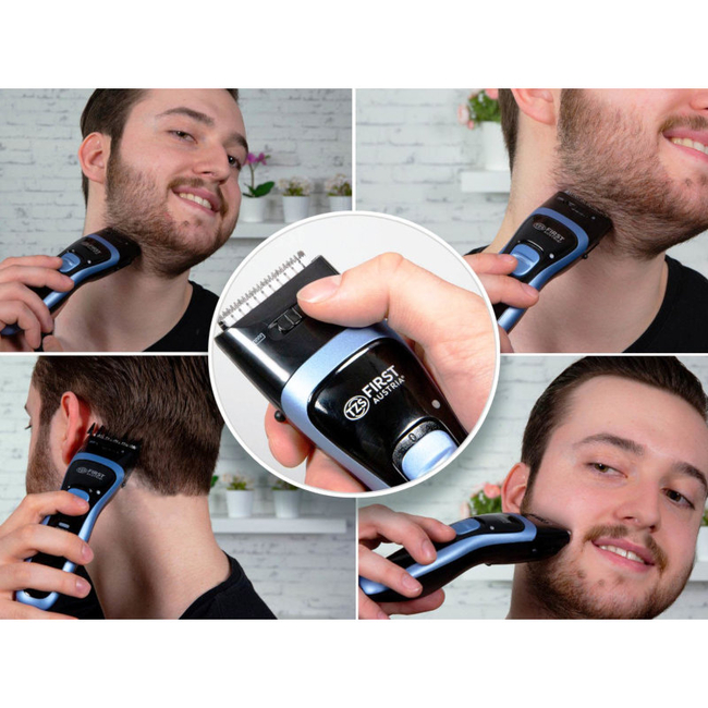 Επαναφορτιζόμενη κουρευτική μηχανή με μια λεπίδες από ανοξείδωτο ατσάλι. Λειτουργεί με την ενσωματωμένη μπαταρία Ni-MH 1200 mAh και όταν αυτή τελειώσει μπορεί να λειτουργήσει και με ρεύμα. Διαθέτει μοτέρ ισχύος 3 W και ρυθμιζόμενη σε ύψος χτένα για κόψιμο σε διαφορετικά μήκη χωρίς να αλλάξετε χτένες και ότι χρειάζεστε για τη συντήρησή της. Είναι εργονομικά σχεδιασμένη για ευκολία και ακρίβεια στη χρήση, ώστε να κόβετε μαλλιά και μούσια όπως ακριβώς τα θέλετε. Περιλαμβάνεται βάση, στην οποία μπορείτε να την αποθηκεύετε και να τη φορτίζετε.