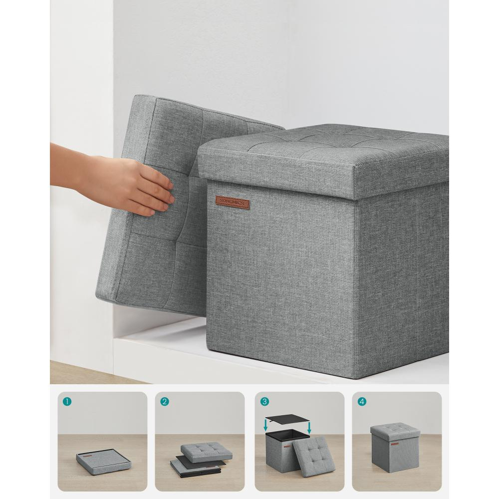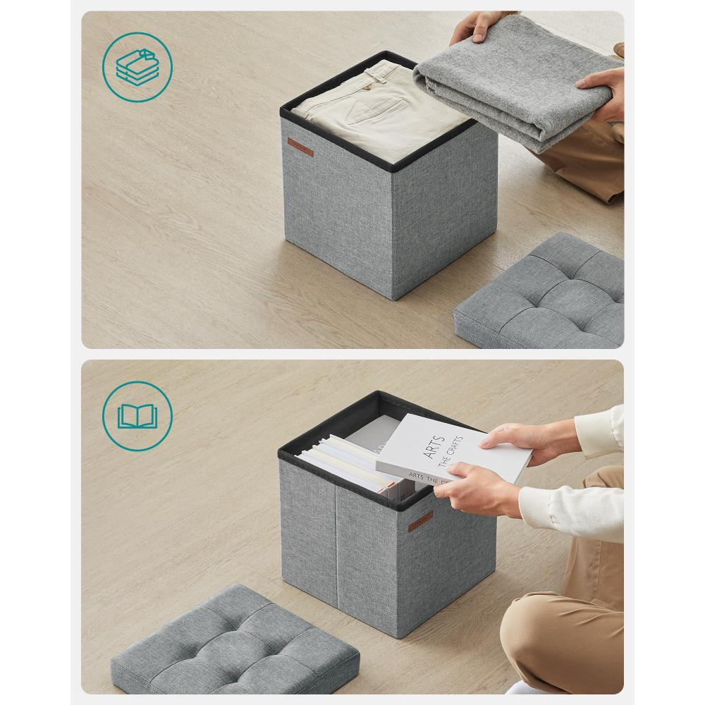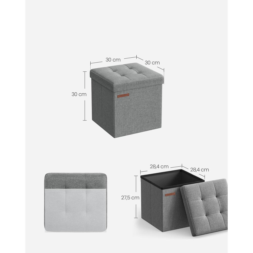 SONGMICS Αναδιπλούμενο Σκαμπό Αποθήκευσης Γκρι 30 x 30 x 30 cm LSF028G02