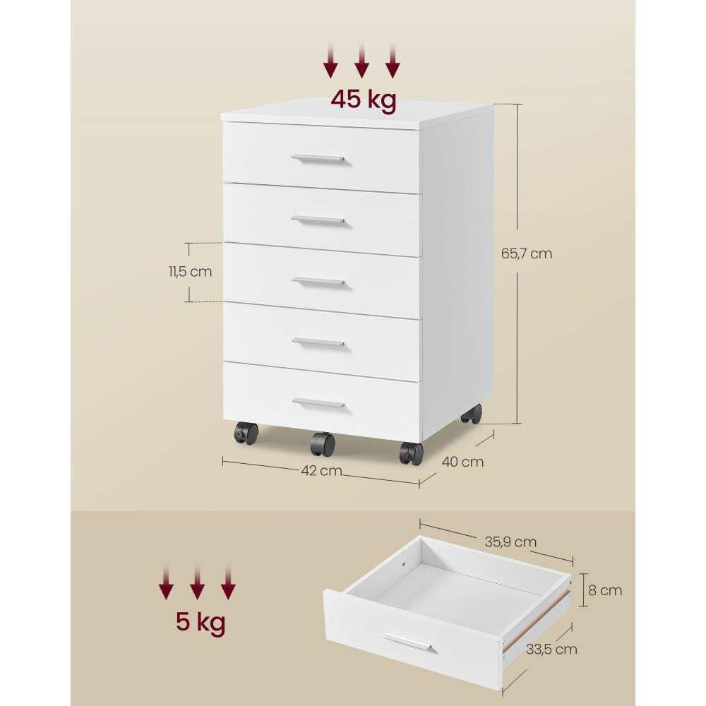 VASAGLE Ντουλάπι αρχείων με 5 συρτάρια λευκό