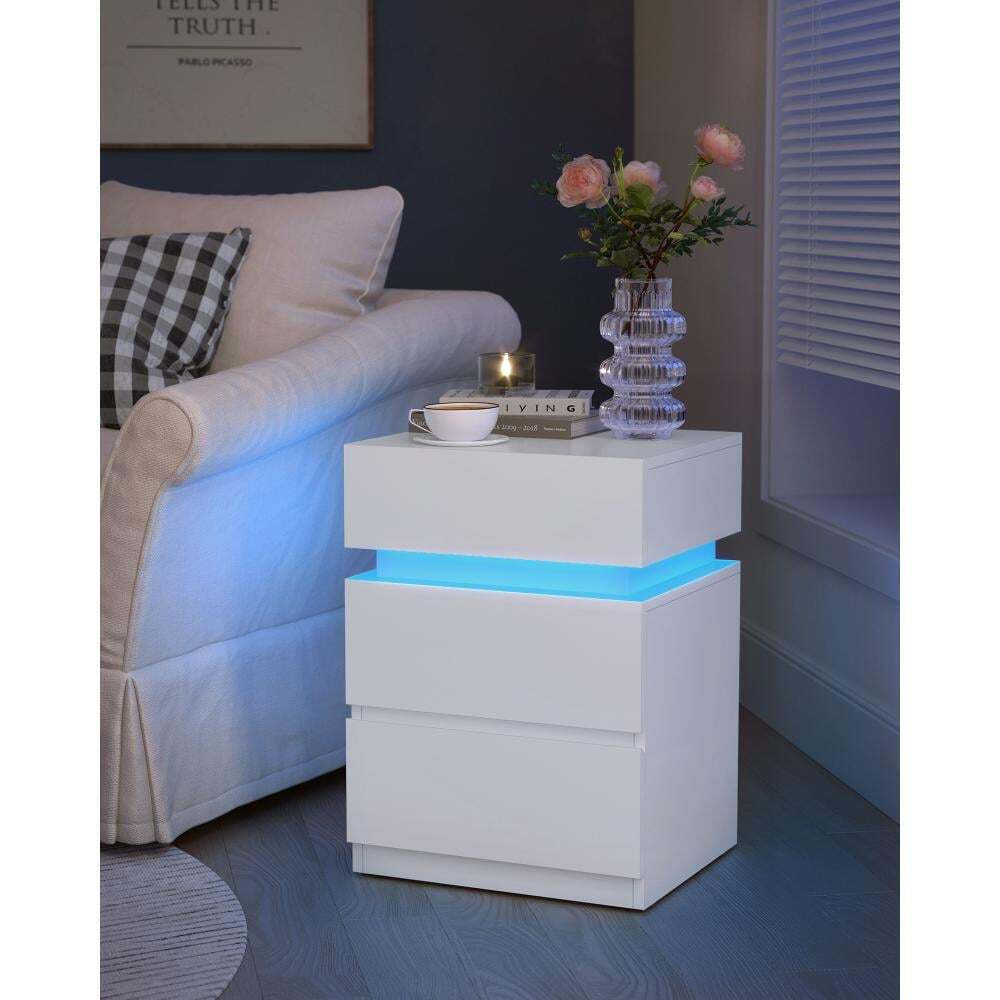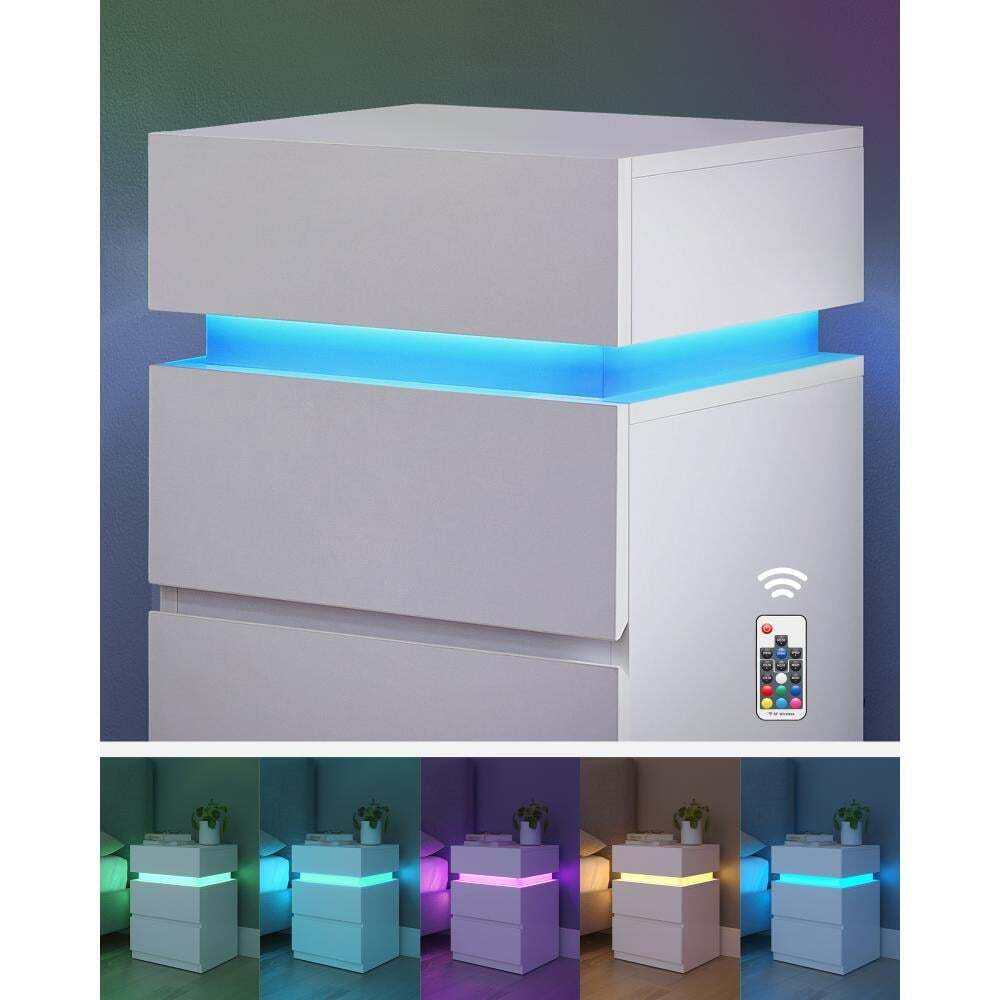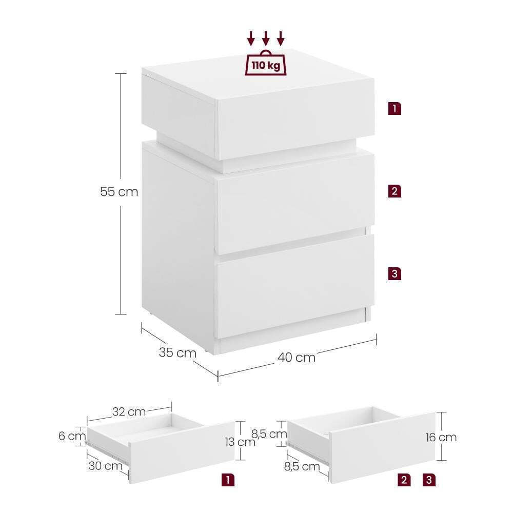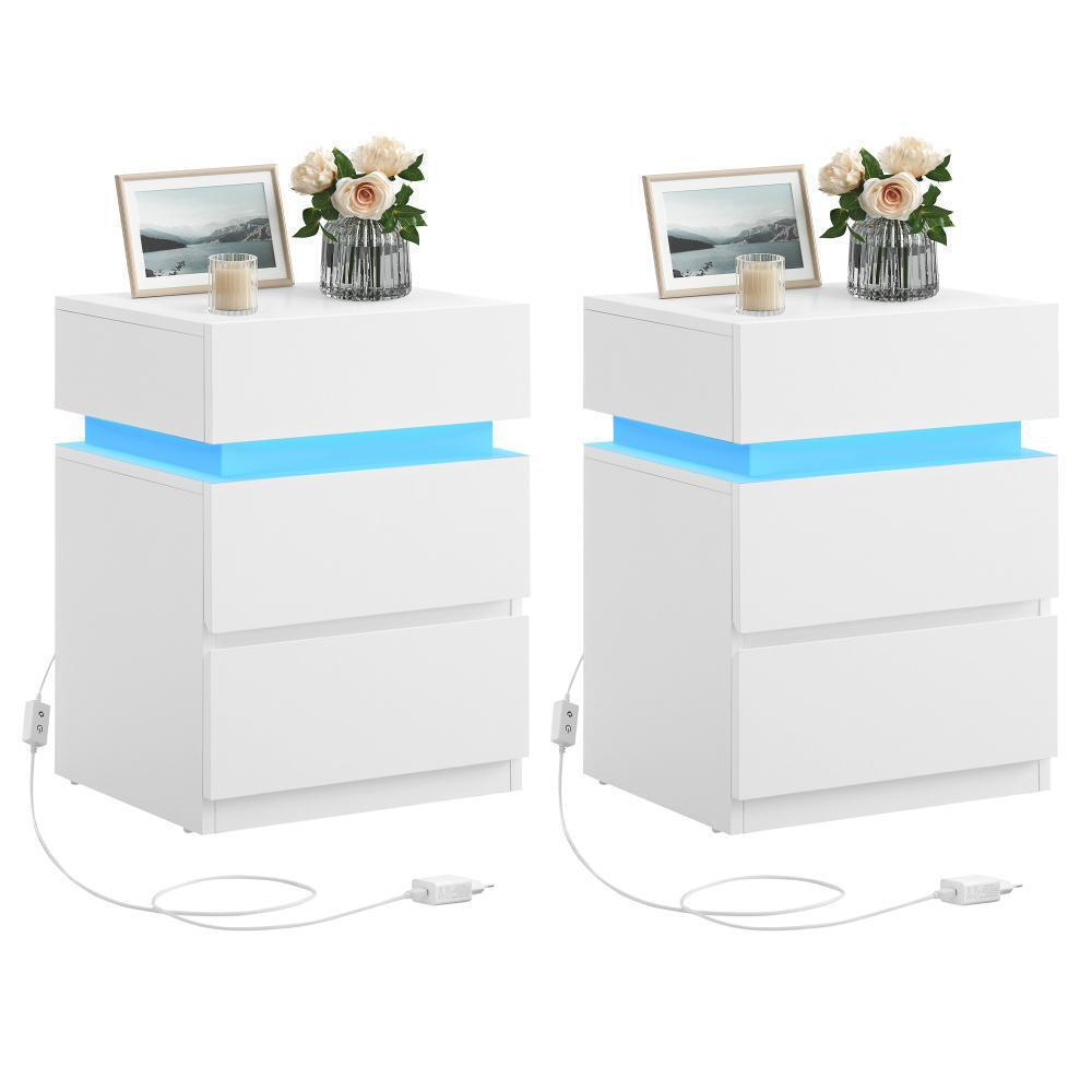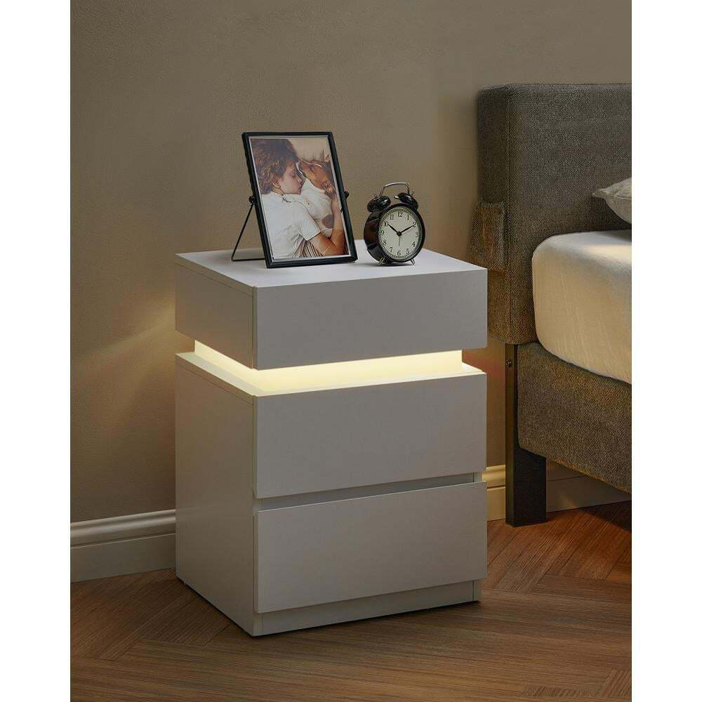 VASAGLE κομοδίνο με ενσωματωμένο LED φωτισμό λευκό 2 τεμάχια LET0830W01 VASLET0830W01