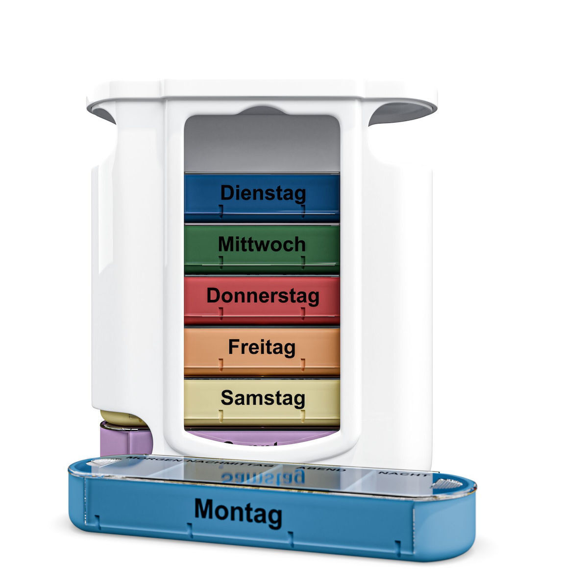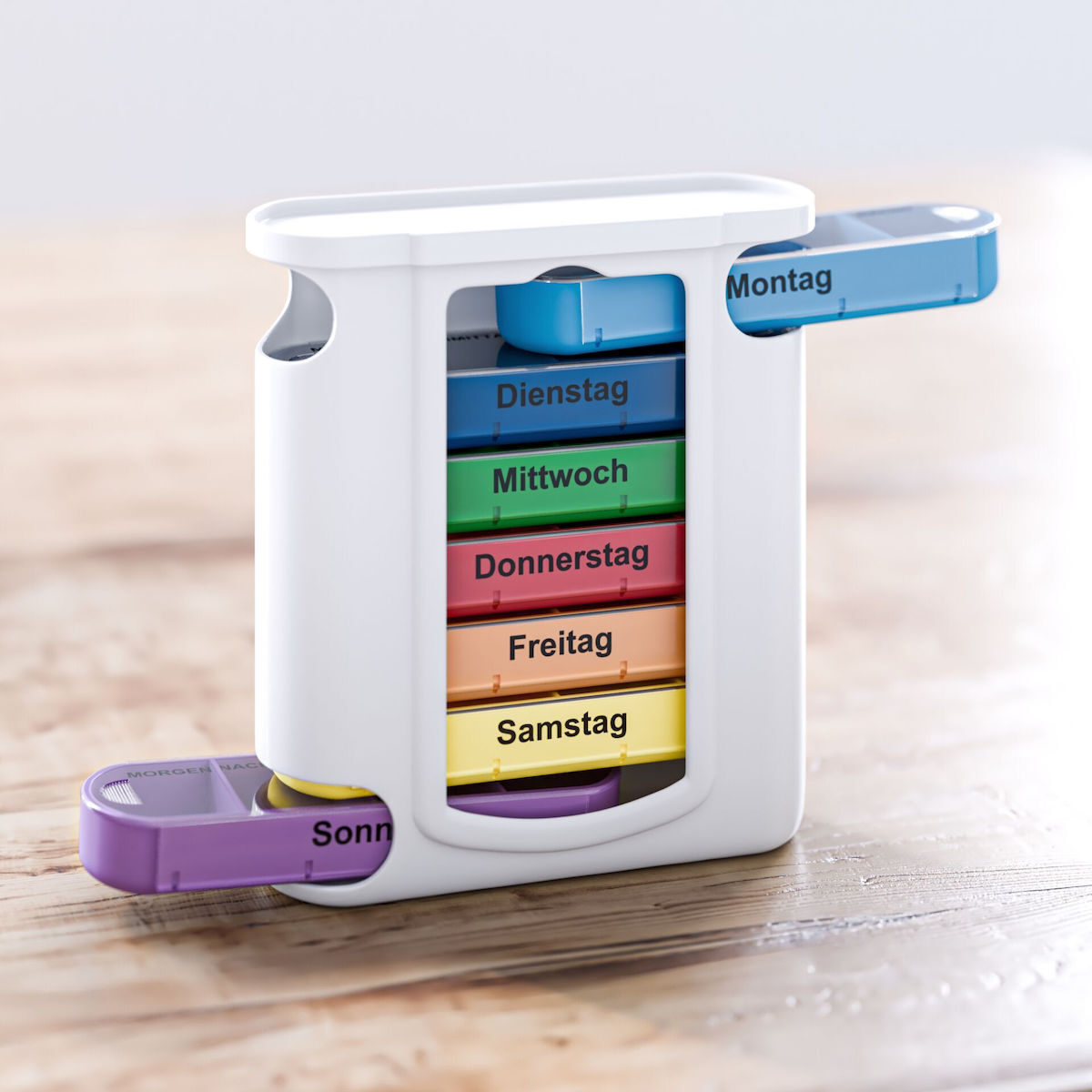 Product formRectangular weekly dispenser with individual daily sliders