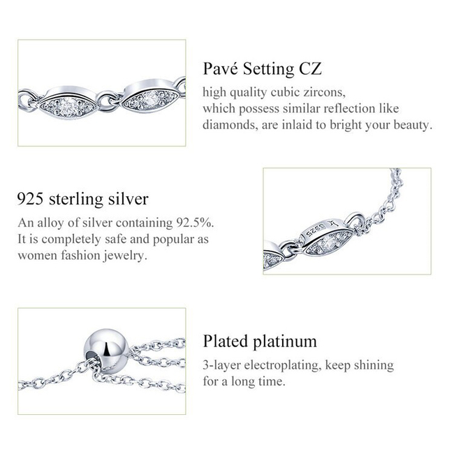 BAMOER βραχιόλι SCB086 με κυβική ζιρκόνια, ασήμι 925, ασημί