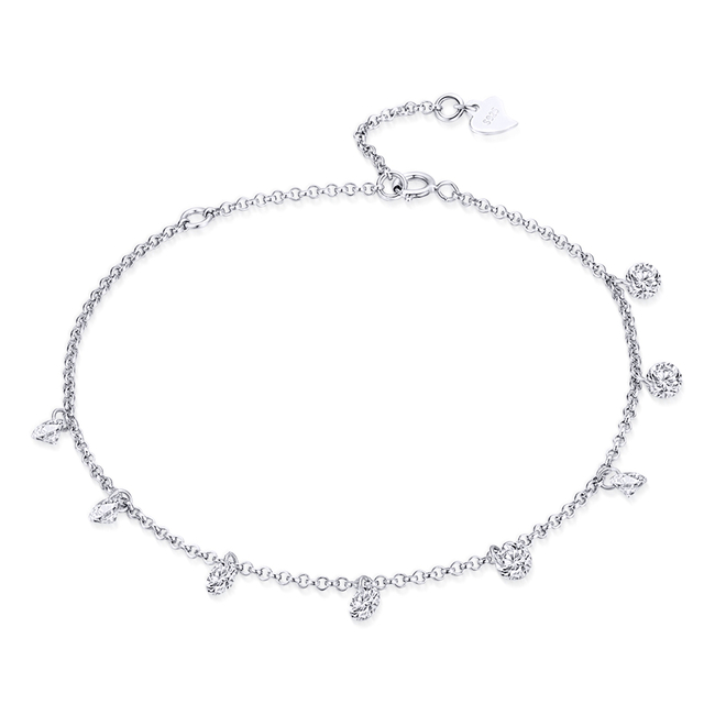 Κομψό βραχιόλι, διακοσμημένο με κρεμαστά κρύσταλλα κυβικής ζιρκόνιας, λευκού χρώματος τα οποία προσφέρουν μοναδική λάμψη στο κόσμημα.