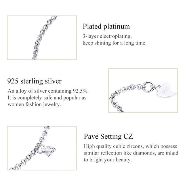 BAMOER βραχιόλι SCB103 με κυβική ζιρκόνια, ασήμι 925, ασημί