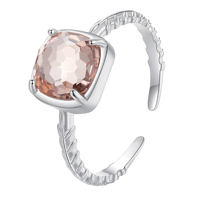 BAMOER δαχτυλίδι BSR598-E με ροζ διάφανο κρύσταλλο, ανοιγόμενο, ασήμι 925, ασημί
