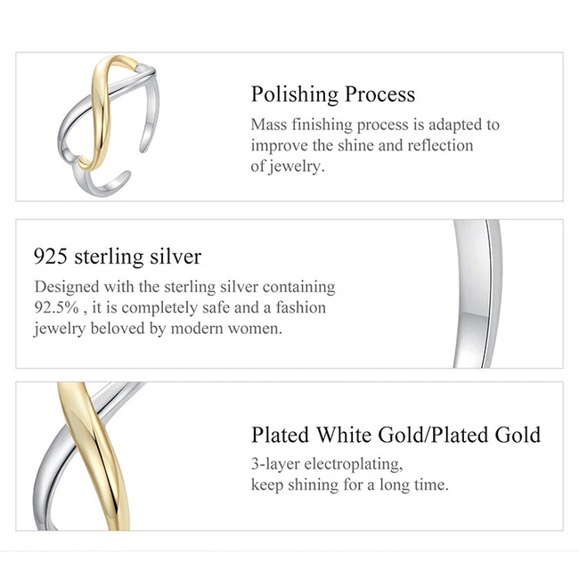 BAMOER δαχτυλίδι BSR622-E, ανοιγόμενο, ασήμι 925, ασημί/χρυσό