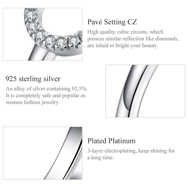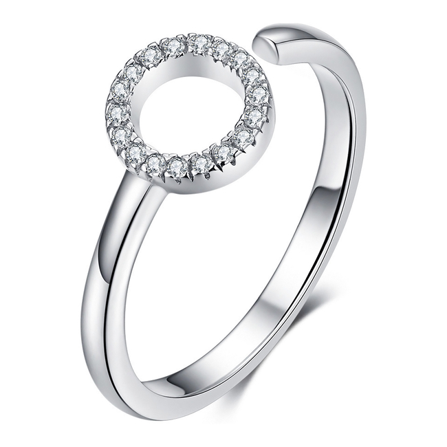 BAMOER δαχτυλίδι SCR545 με κυβική ζιρκόνια, ανοιγόμενο, ασήμι 925, ασημί