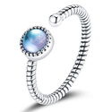 Εντυπωσιακό δαχτυλίδι, διακοσμημένο με συνθετική φεγγαρόπετρα, η οποία αντανακλά μοναδικά το φως και προσφέρει λάμψη στο κόσμημα.