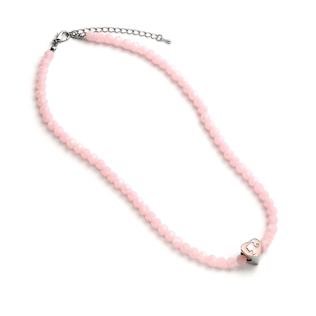 Αυτό το κολιέ διαθέτει μια αλυσίδα από μαλακούς ροζ χάντρες, διακοσμημένη με ένα διακριτικό charm σε σχήμα καρδιάς. Αποτυπώνει την εμβληματική αισθητική της Barbie σε ένα φορέσιμο και καθημερινό αξεσουάρ.
