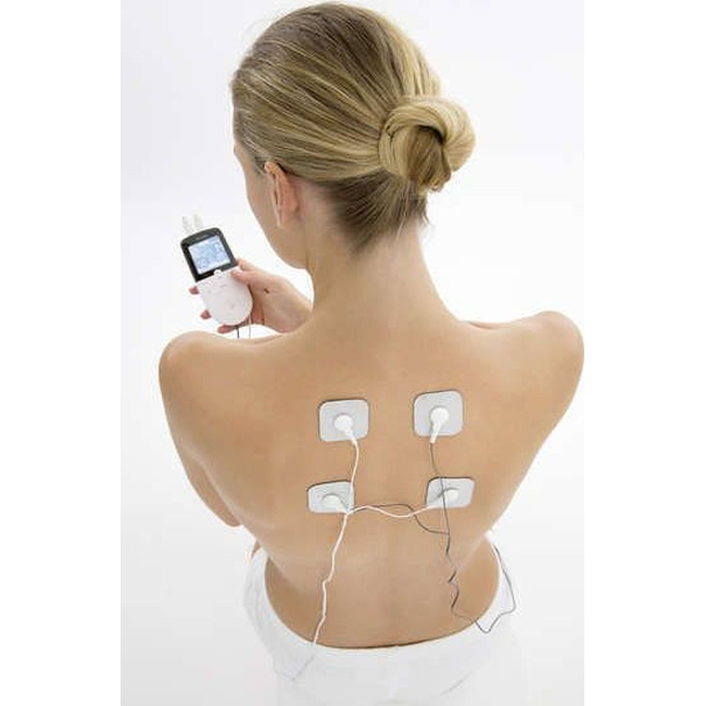 - Ήπια ηλεκτρικά ερεθίσματα που δίδονται μέσω 4 αυτοκόλλητων ηλεκτροδίων (45 x 45 mm)