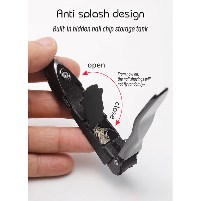 Ο νυχοκόπτης ενσωματώνει δοχείο για την συλλογή των νυχιών που αποτρέπει την πτώση τους με την κοπή, διατηρώντας τον χώρο σας καθαρό.