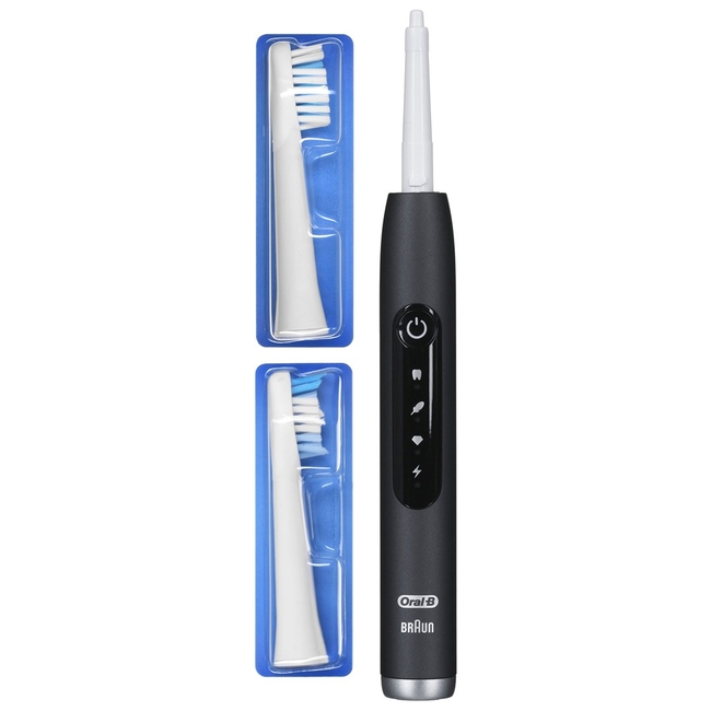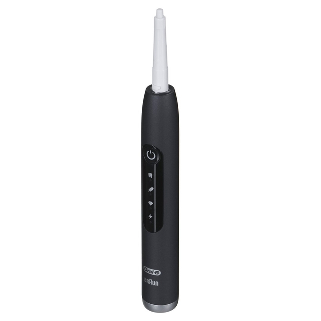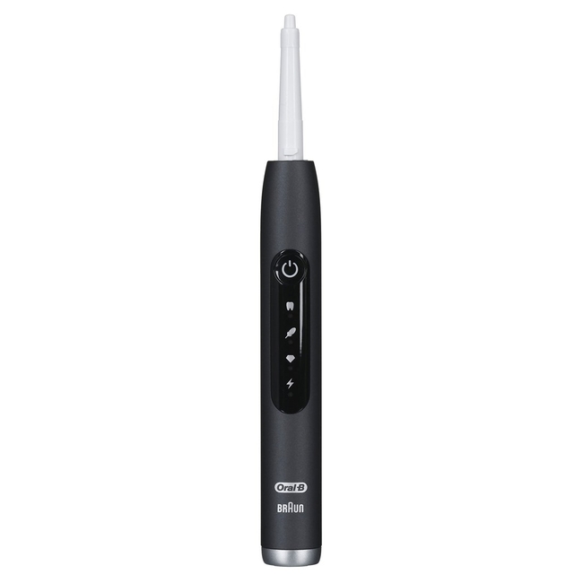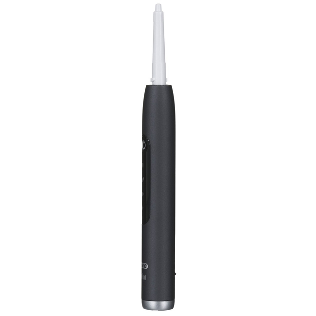 Η οδοντόβουρτσα έρχεται με μια λεπτή, επιμήκη κεφαλή βουρτσών που περιέχει στρογγυλές δονήσεις. Αυτές οι τρίχες εξασφαλίζουν άνετο καθαρισμό δύσβατων περιοχών και κενών μεταξύ των δοντιών. Διαθέσιμη σε κομψό μαύρο χρώμα, προσθέτει στην premium αισθητική του προϊόντος.