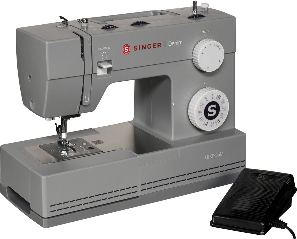 Η Singer Heavy Duty 6335M Denim είναι μια ανθεκτική και υψηλής απόδοσης μηχανή ραψίματος, σχεδιασμένη ειδικά για παχιά υφάσματα όπως το τζιν και πολλαπλά στρώματα.