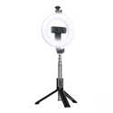 Αναδιπλουμενο selfie stick με ring light, λειτουργία Bluetooth και ενσωματωμένο τρίποδοΧαρακτηριστικά:- Κατάλληλο για smartphones 5.1-7.8''- Αναδιπλούμενο selfie stick, που προσφέρει εξοικονόμηση χώρου- Ενσωματωμένο ring light, για να έχετε πάντα τον ιδανικό φωτισμό για τις selfies και τα video σας- Διαθέτει 3 επίπεδα θερμοκρασίας χρώματος (θερμό λευκό, φυσικό λευκό, ψυχρό λευκό)- Διαθέτει 9 επίπεδα ρύθμισης της φωτεινότητας- Διαθέτει αποσπώμενο τηλεχειριστήριο, το οποίο σας επιτρέπει να τραβήξετε φωτογραφίες από μεγάλη απόσταση - Μπαταρία τηλεχειριστηρίου: CR1620 (μη-επαναφορτιζόμενη)- Διαθέτει βίδα κεφαλής 1/4'' στην κορυφή του ring light, ώστε να τοποθετήσετε action ή ψηφιακή κάμερα- Ενσωματωμένο τρίποδο, για μέγιστη σταθερότητα στα πλάνα σας- Ρυθμιζόμενο ύψος- Μέγιστο ύψος: 95cm- Λειτουργία Bluetooth- Έκδοση Bluetooth: v5.2- Εύρος σήματος Bluetooth: 10m- Συχνότητα μεταδοσης: 2.4-2.4835GHz- Τροφοδοσία: DC5V/100mA- Ισχύς LED λάμπας: 0.2W- Διαστάσεις: 214 x 168 x 66 mm- Υλικό κατασκευής: ABS, Κράμα αλουμινίου - Χρώμα: Μαύρο- Συσκευασία με hook