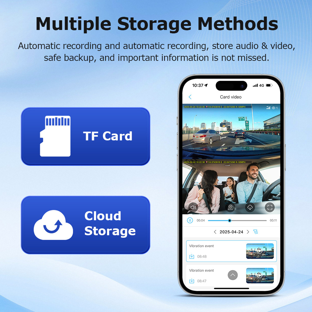 -Storage: TF card (4GB–64GB) + Cloud storage.