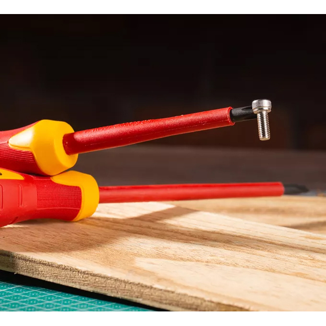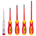 Σετ κατσαβιδιών ηλεκτρολόγου της Deli που αποτελείται από 2 ίσια κατσαβίδια, 2 σταυρωτά και 1 δοκιμαστικό κατσαβίδι.