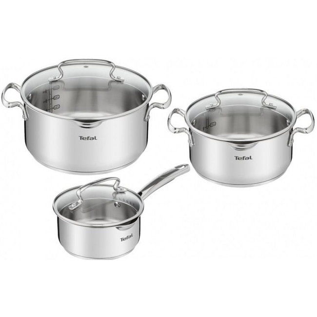 Περιεχόμενα Σετ: Το σετ 6 τεμαχίων περιλαμβάνει μια κατσαρόλα 16 εκ. και δύο κατσαρόλες 20 εκ. και 24 εκ., οι οποίες είναι εξοπλισμένες με γυάλινα καπάκια.