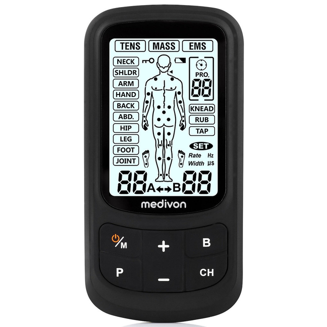 - 60 massage programs; 30 TENS modes; 27 EMS modes; 3 relaxation modes