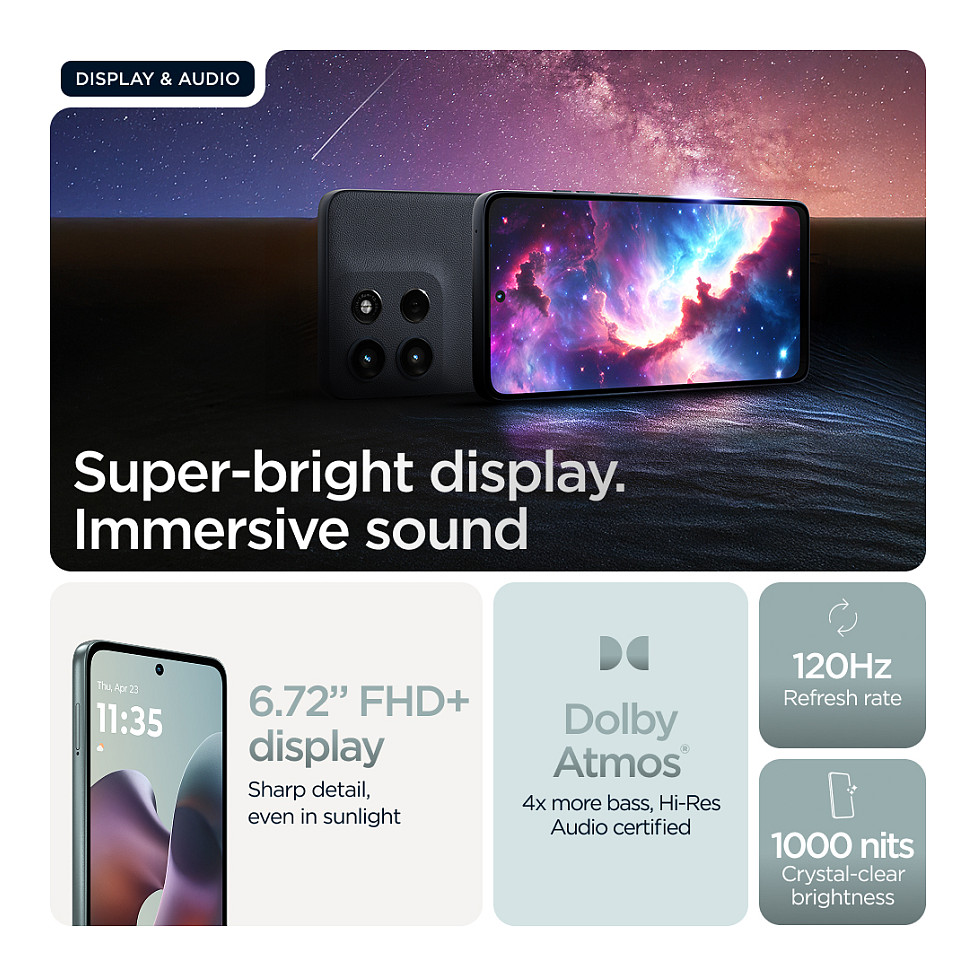 - 6.72-ιντσών Full HD+ LCD με ρυθμό ανανέωσης 120Hz για ομαλές εικόνες.
