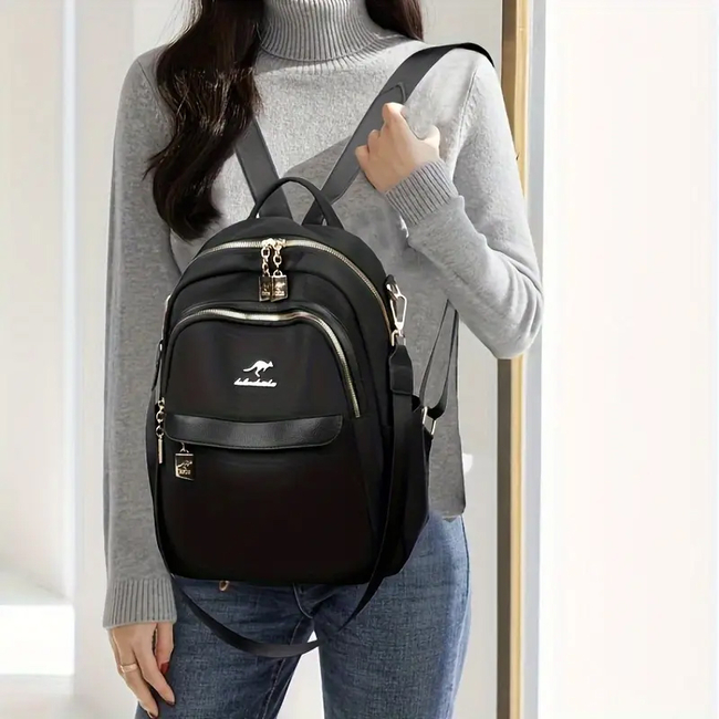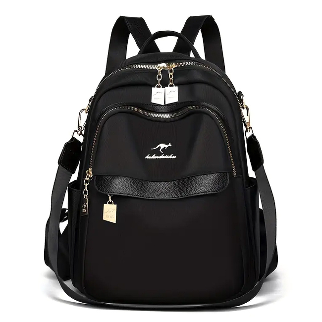 Τσάντα πλάτης με μοντέρνο design, σε μαύρο χρώμα. Διαθέτει πολλές εσωτερικές και εξωτερικές τσέπες, για να τοποθετήσετε τα προσωπικά σας αντικείμενα.