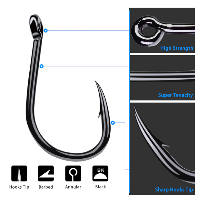 Σετ αγκίστρια ψαρέματος με θήκη για την αποθήκευση τους. Είναι κατασκευασμένα από ανθεκτικό και υψηλής ποιότητας carbon steel που δεν σκουριάζει.