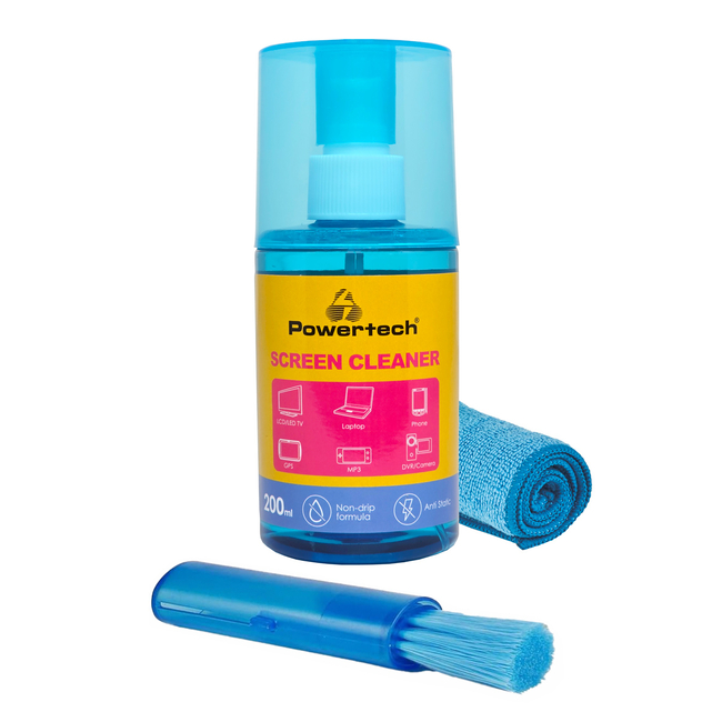 POWERTECH σπρέι καθαρισμού οθόνης PT-1313 με πανί μικροϊνών & βουρτσάκι, 200ml