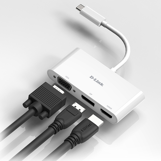 Ο D-Link DUB-V310 3-σε-1 USB-C σε HDMI/VGA/DisplayPort προσαρμογέας είναι μια πολυλειτουργική και συμπαγής συσκευή που έχει σχεδιαστεί για να βελτιώνει την υπολογιστική σας εμπειρία παρέχοντας πολλές επιλογές οθόνης.