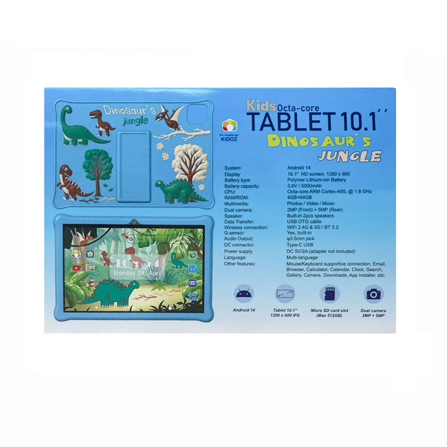 Tablet Lamtech Octa-Core Kid 10.1' 4Gb+64Gb Android 14 Sky Blue Dinosaur'S Jungle