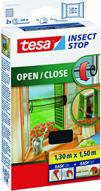Tesa Hook & Loop Σίτα Παραθύρου Κάθετης Κίνησης Γκρι 150x130cm