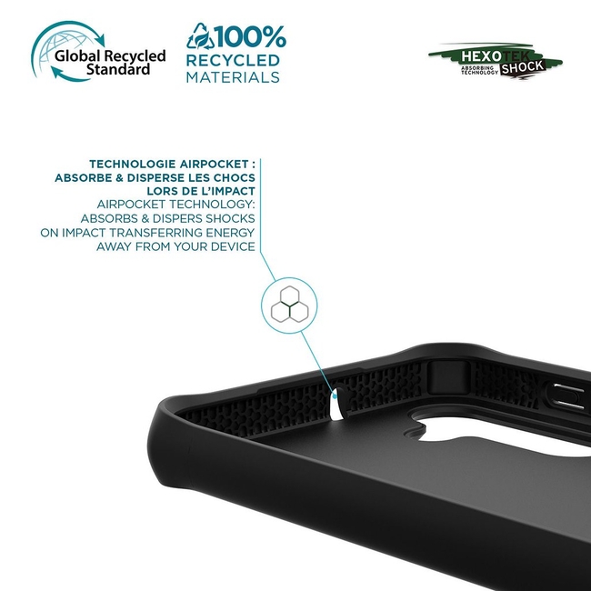 Η θήκη είναι κατασκευασμένη από 100% υλικά πιστοποιημένα σύμφωνα με το Global Recycled Standard (GRS), ευθυγραμμισμένα με τις αξίες των οικολογικών καταναλωτών. Διαθέτει προσεκτικά σχεδιασμένες ανεβασμένες άκρες για να προστατεύει την οθόνη και τον φακό της κάμερας από τις πτώσεις.