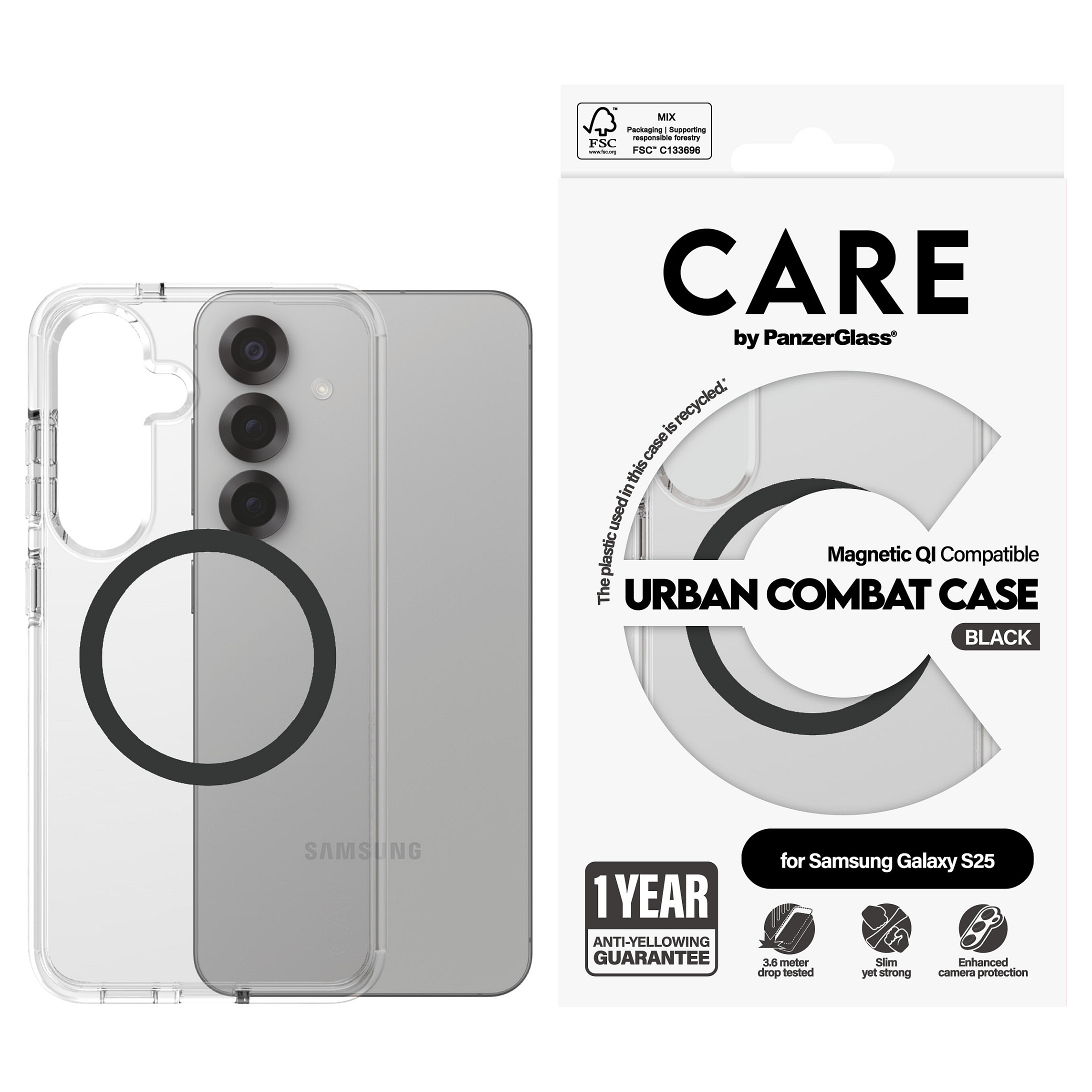 Θήκη Κινητού PanzerGlass CARE Flagship Clear w. Black QI Compatible Galaxy S25