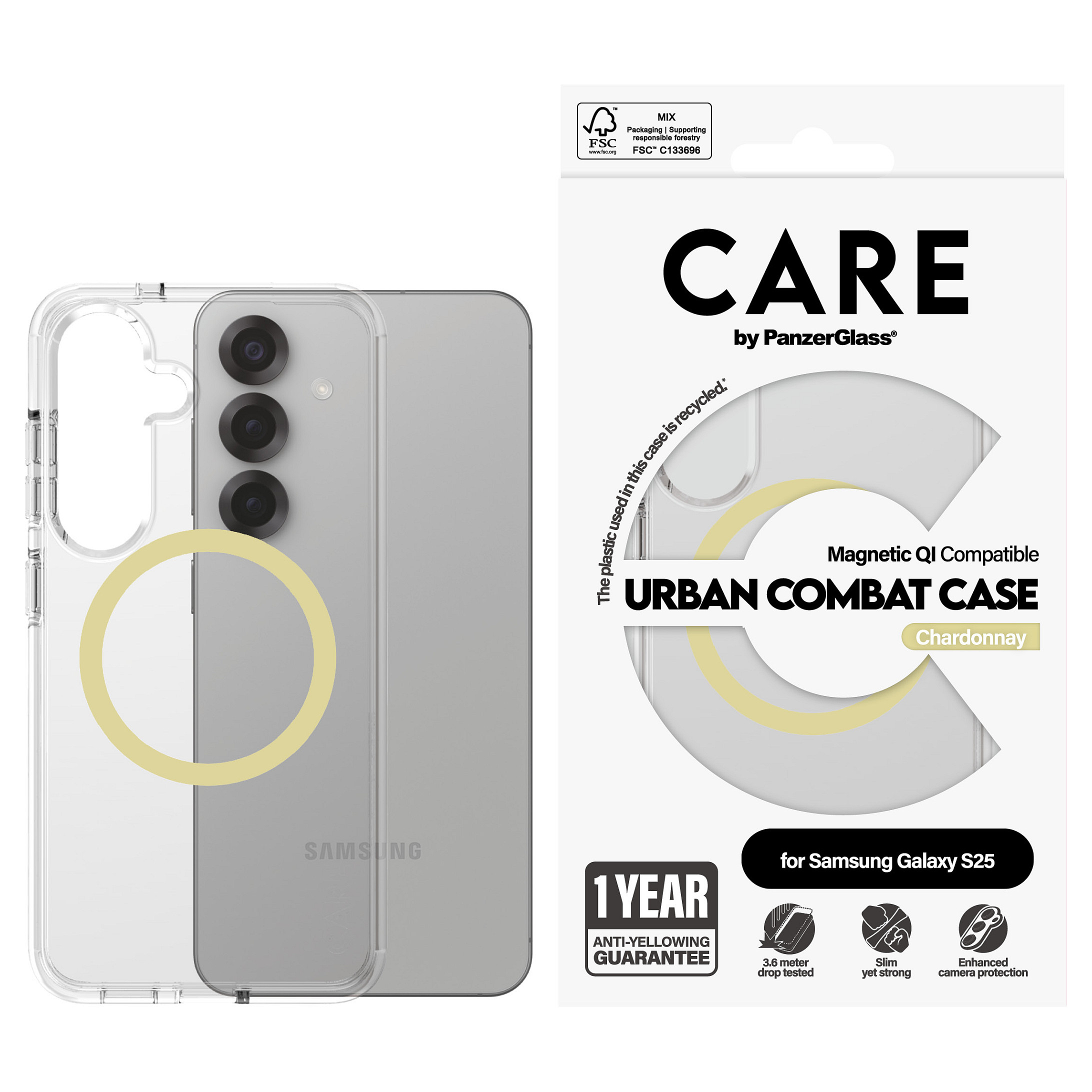 Η CARE Flagship Case Clear w. Chardonnay QI for Galaxy S25 είναι ένα κομψό και λειτουργικό αξεσουάρ για το Samsung Galaxy S25. Αυτή η θήκη έχει σχεδιαστεί με γνώμονα και την αισθητική και την προστασία, προσφέροντας μια διαφανή πίσω κάλυψη που αναδεικνύει την ομορφιά της συσκευής σας, ενώ την προστατεύει.