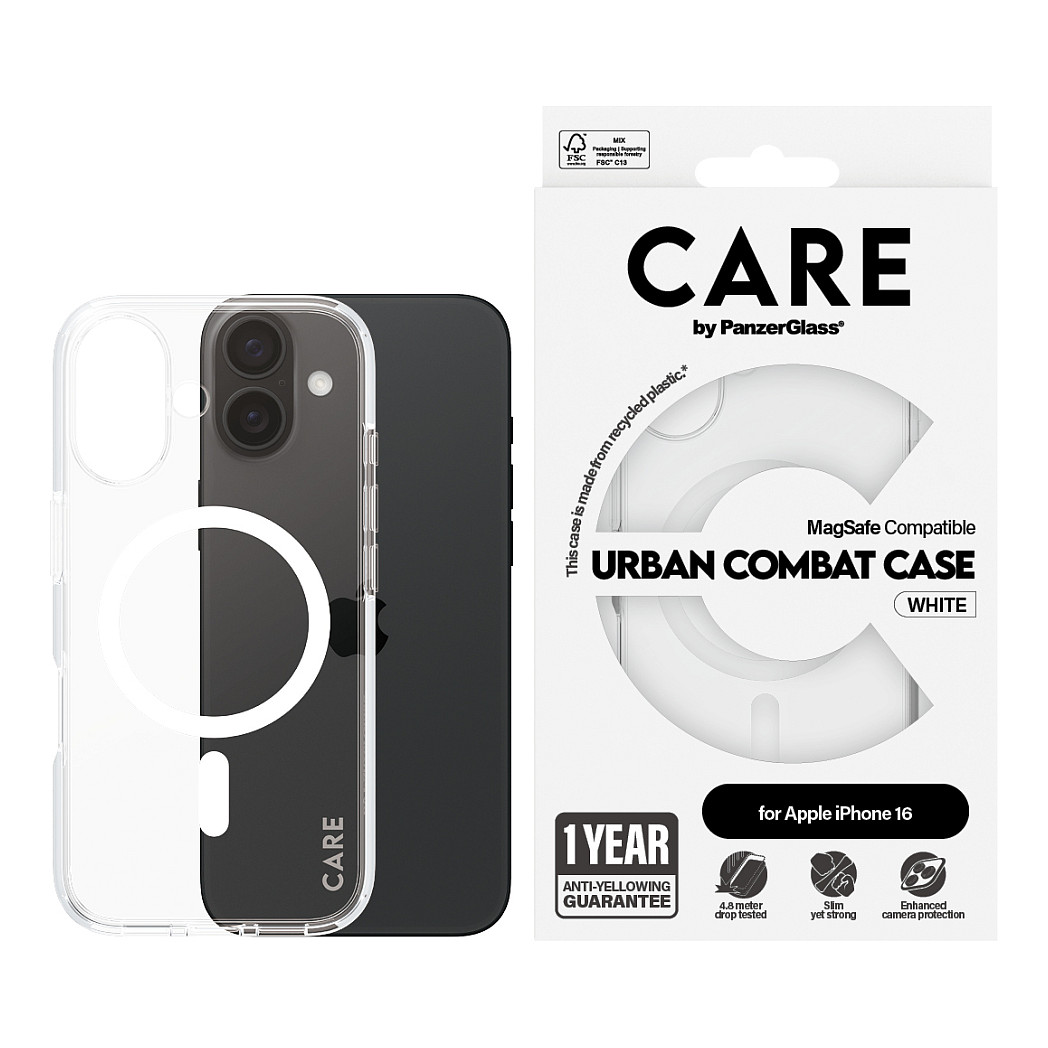 Η CARE Case Flagship White MagSafe iPhone 16 είναι μια premium προστατευτική θήκη για κινητά σχεδιασμένη για τους αστικούς εξερευνητές. Αυτή η θήκη συνδυάζει αντοχή με στυλ, προσφέροντας **προστασία από πτώσεις έως 4.8 μέτρα**. Διαθέτει ενισχυμένες γωνίες και άκρες για να προστατεύει τη συσκευή σας από κρούσεις.