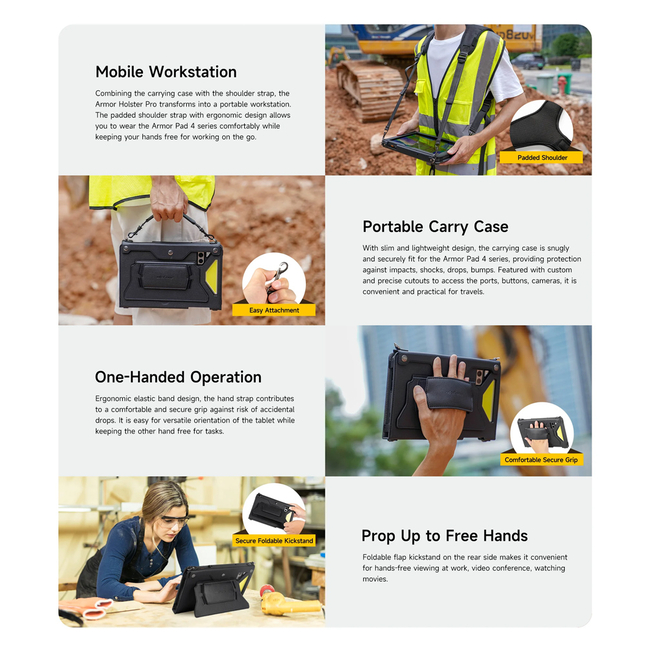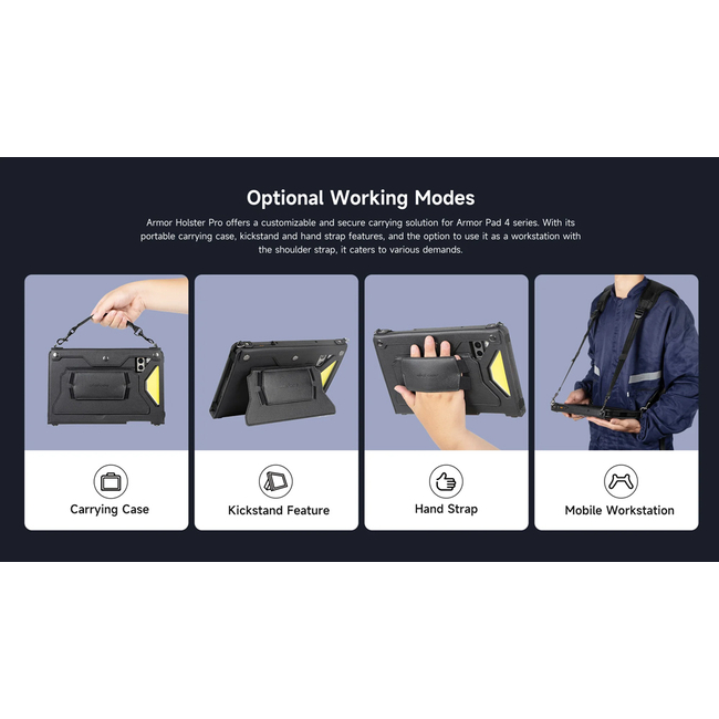 Επιπλέον, εξοπλίζεται με αποσπωμένους ιμάντες πλάτης και χειρός που μεγιστοποιούν την ευκολία μεταφοράς και χρήσης του tablet.