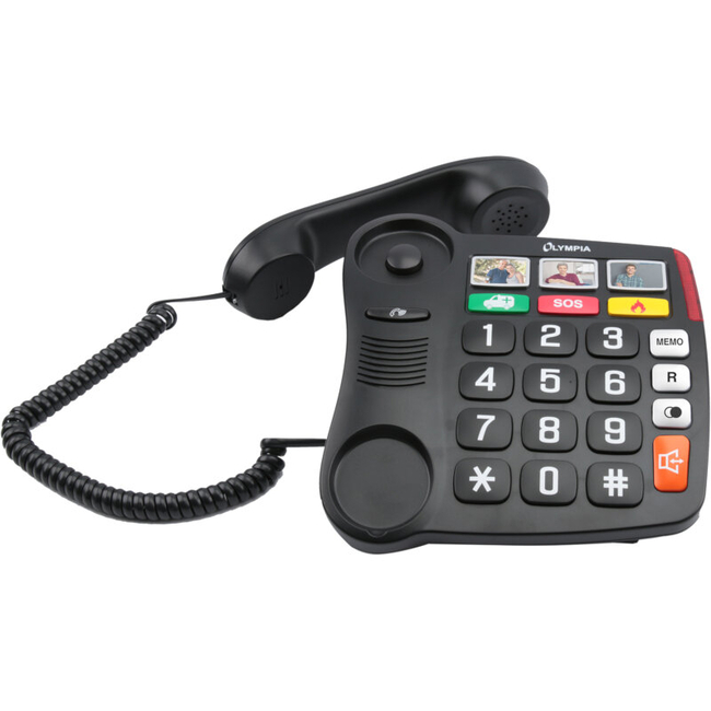 Ενσύρματο τηλέφωνο με μεγάλα πλήκτρα για ευκολία στη χρήση από άτομα μεγάλης ηλικίας ή με μειωμένη όραση. Διαθέτει LED που αναβοσβήνει όταν σας καλούν, συμβατότητα με ακουστικά βαρηκοΐας, ανοιχτή ακρόαση με 3 επίπεδα έντασης και 6 μνήμες για γρήγορη κλήση με το πάτημα ενός κουμπιού. Μπορείτε να προγραμματίσετε όλες τις μνήμες ώστε να καλούν σε όποιους τηλεφωνικούς αριθμούς θέλετε και στις 3 μπορείτε να βάλετε δική σας φωτογραφία για εύκολη αναγνώριση από τον χρήστη.