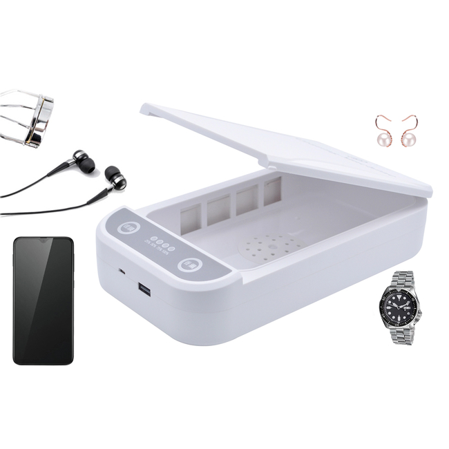 Αποστειρωτής υπεριώδους ακτινοβολίας για αποστείρωση κινητών τηλεφώνων, κοσμημάτων, κλειδιών και άλλων αντικειμένων σε ελάχιστο χρόνο.Εξοπλισμένος με λυχνία UV υπεριώδους ακτινοβολίας που εξοντώνει γρήγορα το 99,99% των μικροοργανισμών.Είναι κατάλληλο για αποστείρωση κινητών έως 6” και αποστειρώνει με ασφαλή τρόπο ηλεκτρονικές συσκευές χωρίς να επηρεάζει τη λειτουργία τους ή να τις βάζει σε κίνδυνο.