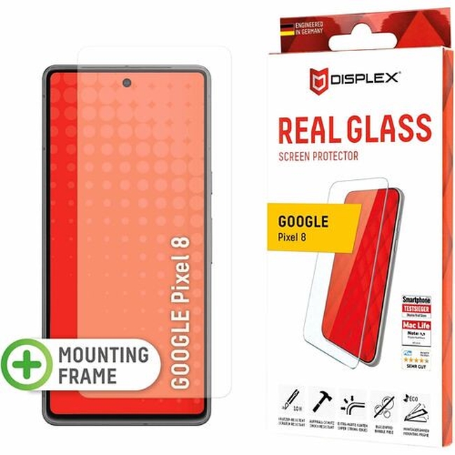 - • Google Pixel 8 Panzerglas • 1 x easy-On Eco Mounting Frame • 1 x Microfiber Cloth • 1 x Dust Remover • 1 x Cleansing Wipe