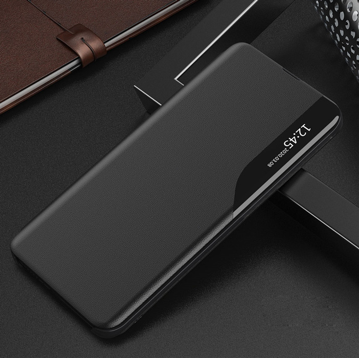 Θήκη TPU μαύρης απόχρωσης, τύπου book με ημιδιάφανο σημείο στο καπάκι ώστε να μπορείτε να βλέπεται την οθόνη του κινητού σας χωρίς να είναι απαραίτητο να ανοίξετε την θήκη. Διαθέτει μικρό εξόγκωμα περιμετρικά των καμερών, ώστε να μην έρχονται σε επαφή με τη επιφάνεια που ακουμπάτε το smartphone σας, για ακόμη μεγαλύτερη προστασία. Είναι κατασκευασμένη από ποιοτικό υλικό, με αντοχή στον χρόνο.