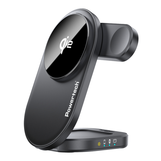 POWERTECH ασύρματος φορτιστής PT-1491, 3 σε 1, Qi2, 15W, μαύρος