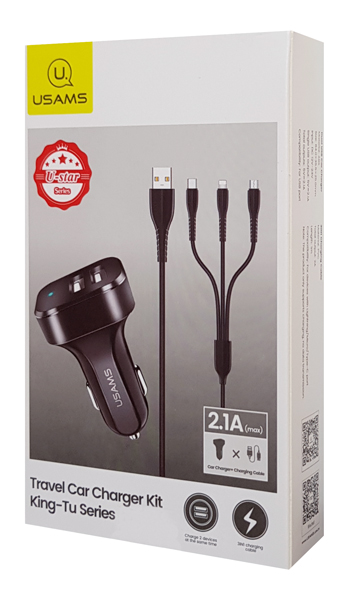 Φορτιστής Αυτοκινήτου Usams C13 & καλώδιο 3 σε 1, 2x USB, 2.1A, μαύρο