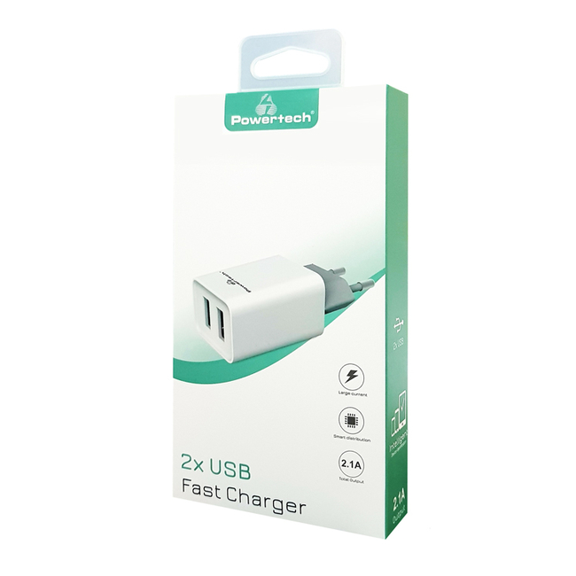 POWERTECH Φορτιστής τοίχου PT-778, 2x USB, 2.1A, λευκός