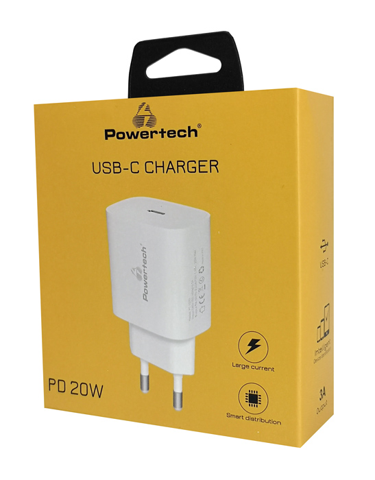 POWERTECH φορτιστής τοίχου PT-1091, USB-C, PD 20W, λευκός