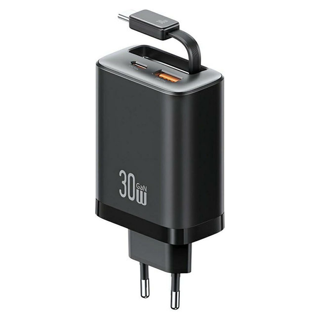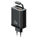 USAMS φορτιστής τοίχου CC296 με καλώδιο, USB & USB-C, 30W, μαύρος