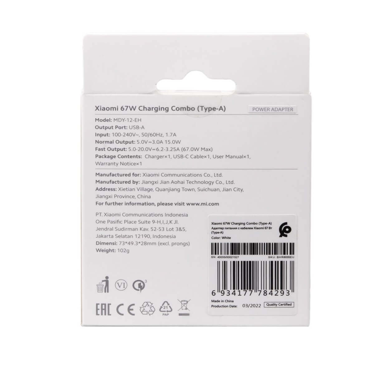 Xiaomi Φορτιστής με Θύρα USB-A και Καλώδιο USB-C 67W Λευκός (BHR6035EU)
