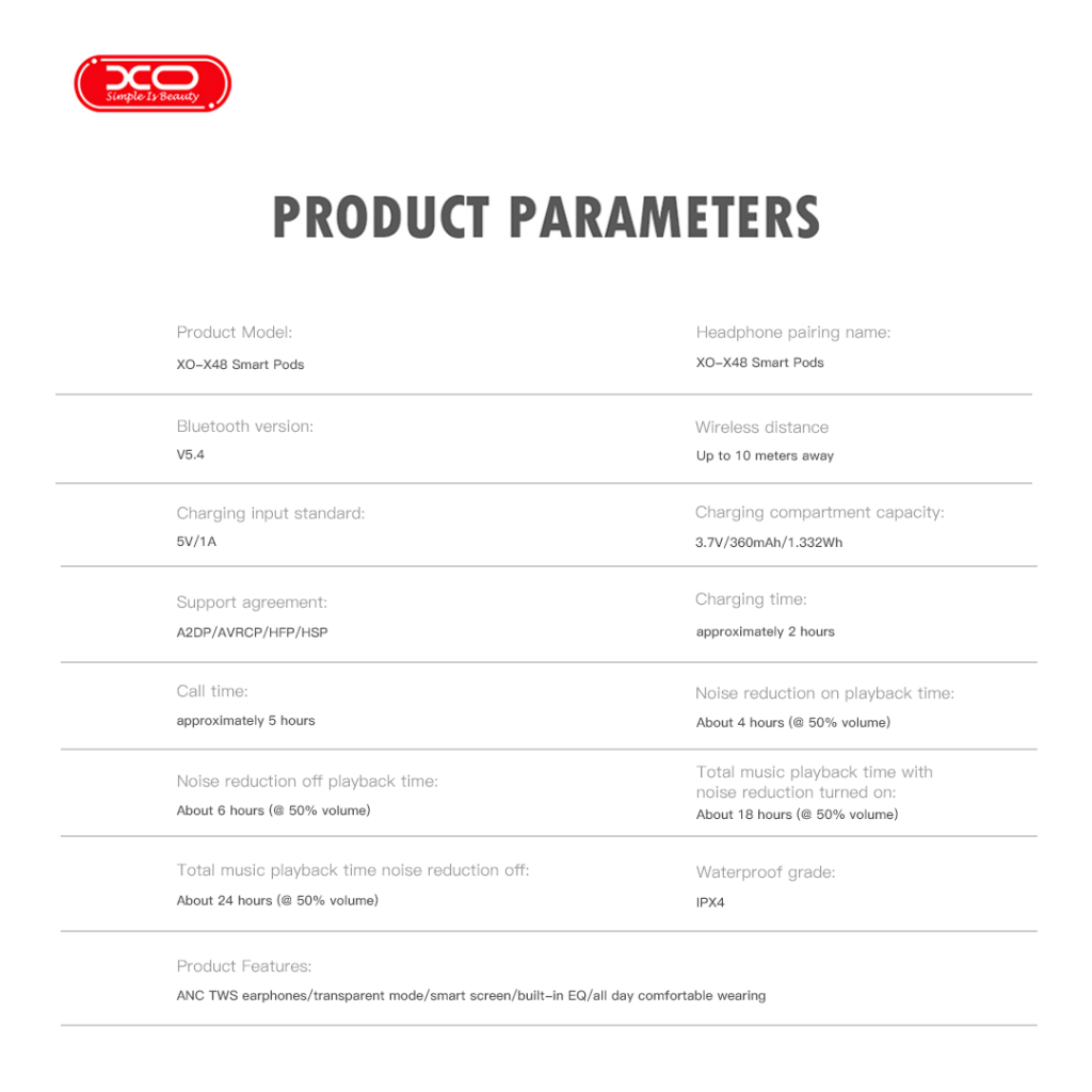 XO Ακουστικά XO X48 Smart TWS 5ης Γενιάς ANC με Οθόνη Λευκά