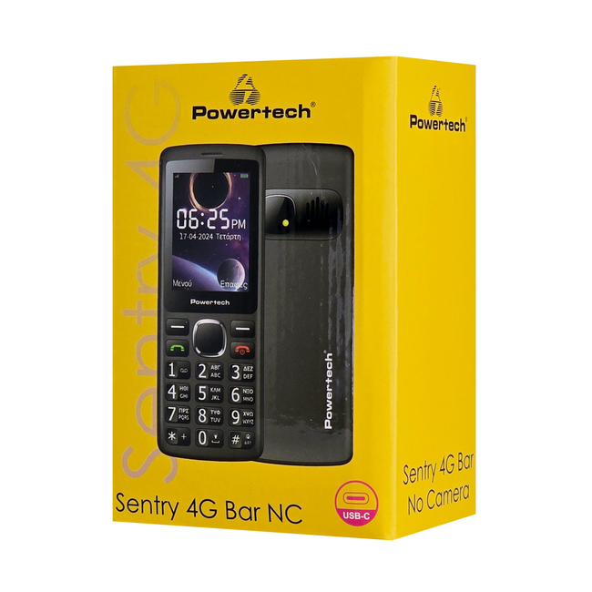 POWERTECH κινητό τηλέφωνο Sentry 4G Bar NC, 2.4", dual SIM, μαύρο